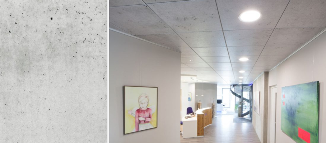 OWA의 OPUS는 자연스러운 느낌의 노출 콘크리트 표면을 지닌 흡음천장재